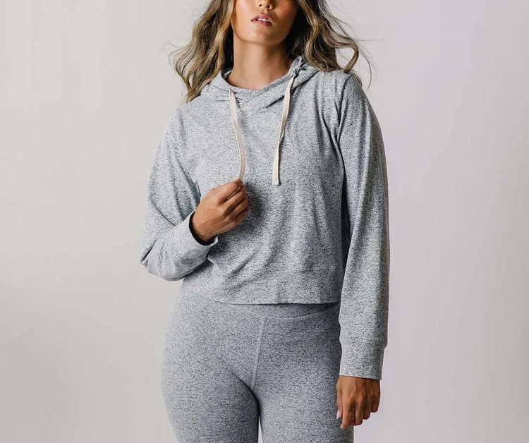 Custom lightweight heather cropped hoodies with drawstring cozy long sleeve hooded sweatshirts