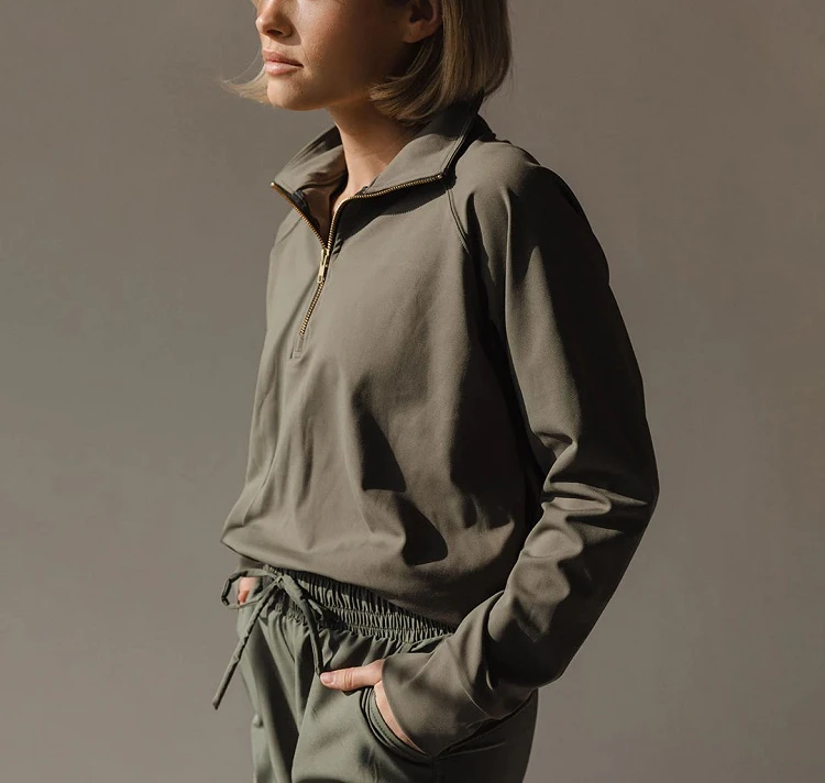 Introducing the perfect throw-on-last-minute, goes-with-everything pullover you've been waiting for! This top is breathable and light, making it the perfect pre and post workout sweatshirt. Featuring a slightly cropped zip and gorgeous gold zipper.